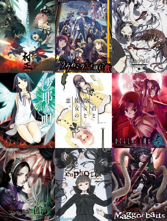 i'm a big fan of nitroplus, nitro+chiral, clockup, 07th expansion.
